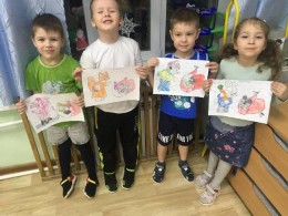 В старшей и подготовительной группе дети рисовали рисунки по прочитанным рассказам