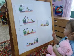 Педагоги с детьми в режимных моментах рассматривали картинки, читали произведения В.Г. Сутеева, оформляли выставку иллюстраций